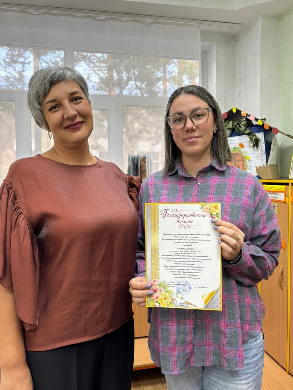 В преддверии праздника "Дня дошкольного работника" специалист Дома культуры Надежда Коробкина поздравила работников дошкольных организаций с профессиональным праздником. Вручила благодарственные письма и исполнила музыкальный подарок.