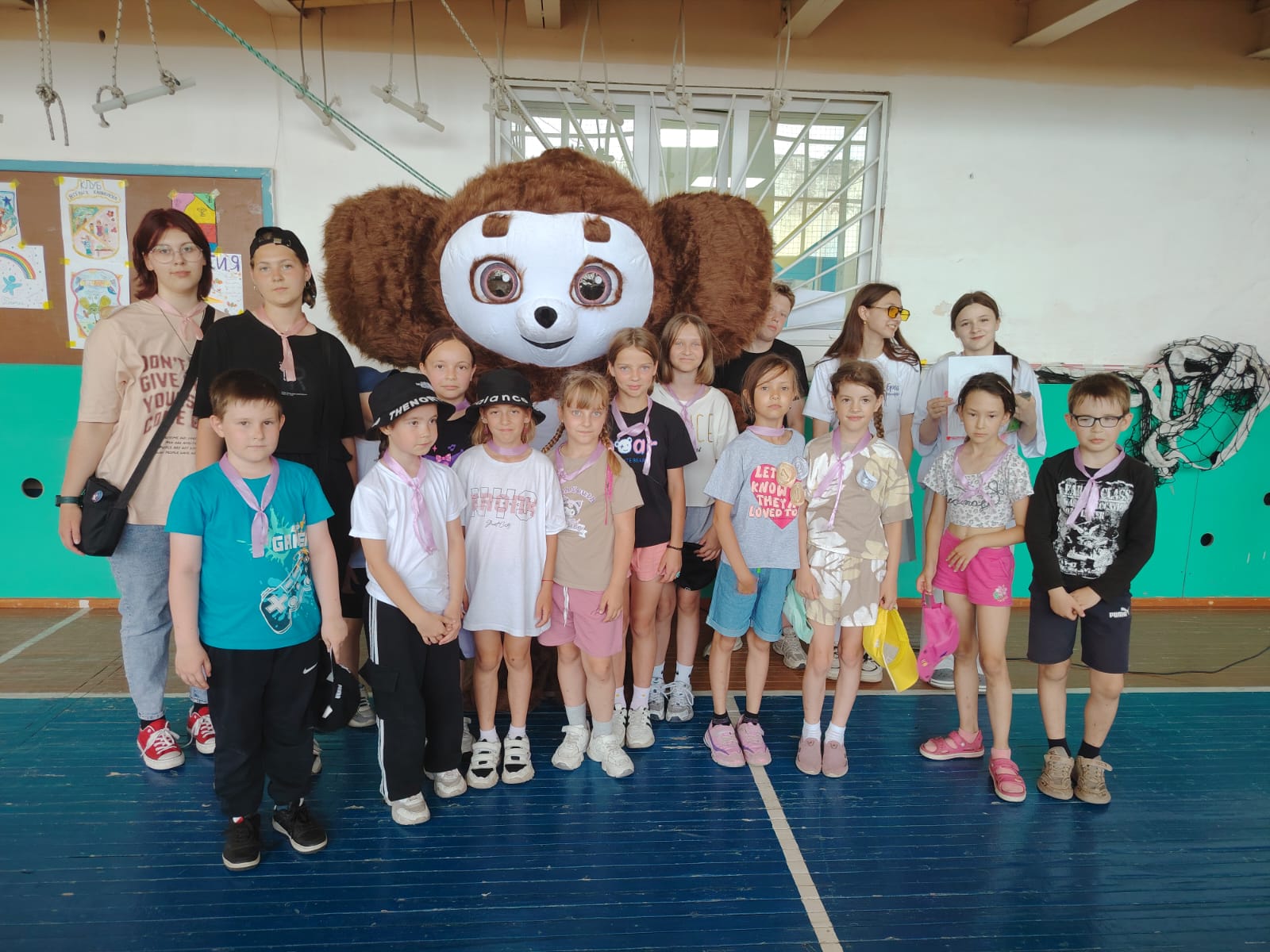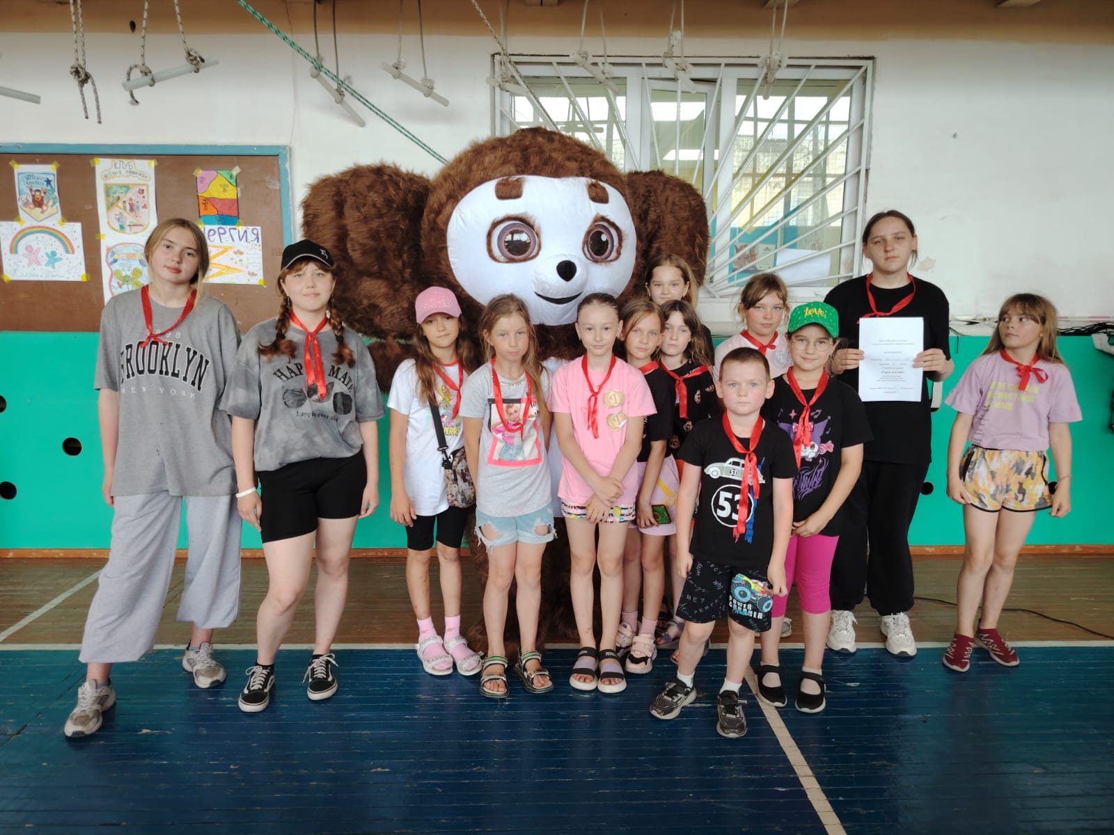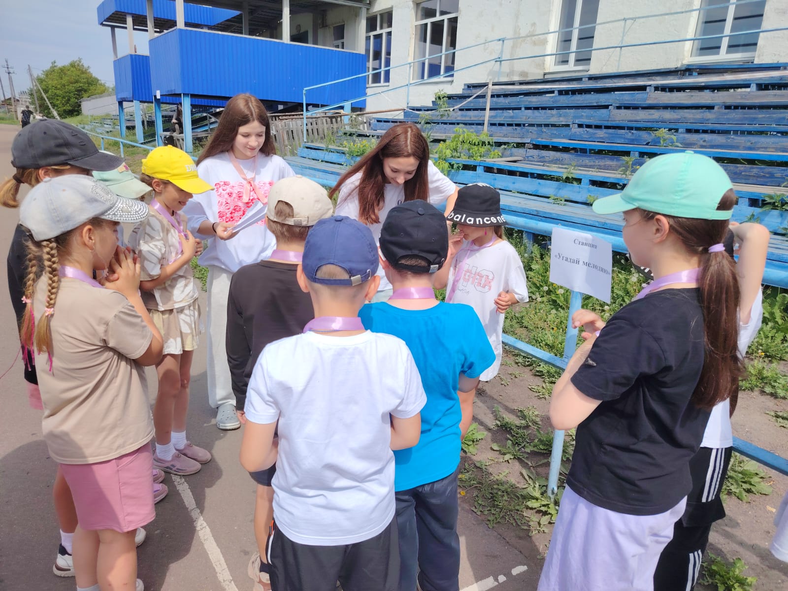 И снова на лагерной школьной площадке игра!!! Игра по станциям "Город детства". Методист МБУК РДК Надежда Коробкина подготовила ребятам различные задания и испытания. Было 8 станций, где дети показали свои знания, талант. Станция "Что ты знаешь о спорте", "Загадочная", "Игровая" и другие, но больше всего ребята были в восторге от станции" Точь-в-точь ". Дети примеряли маски эстрадных исполнителей и под музыку изображали певцов. В конце мероприятия были озвучены победители, вручены награды. Сделали общее фото с Чебурашкой, который пришёл поздравить победителей.