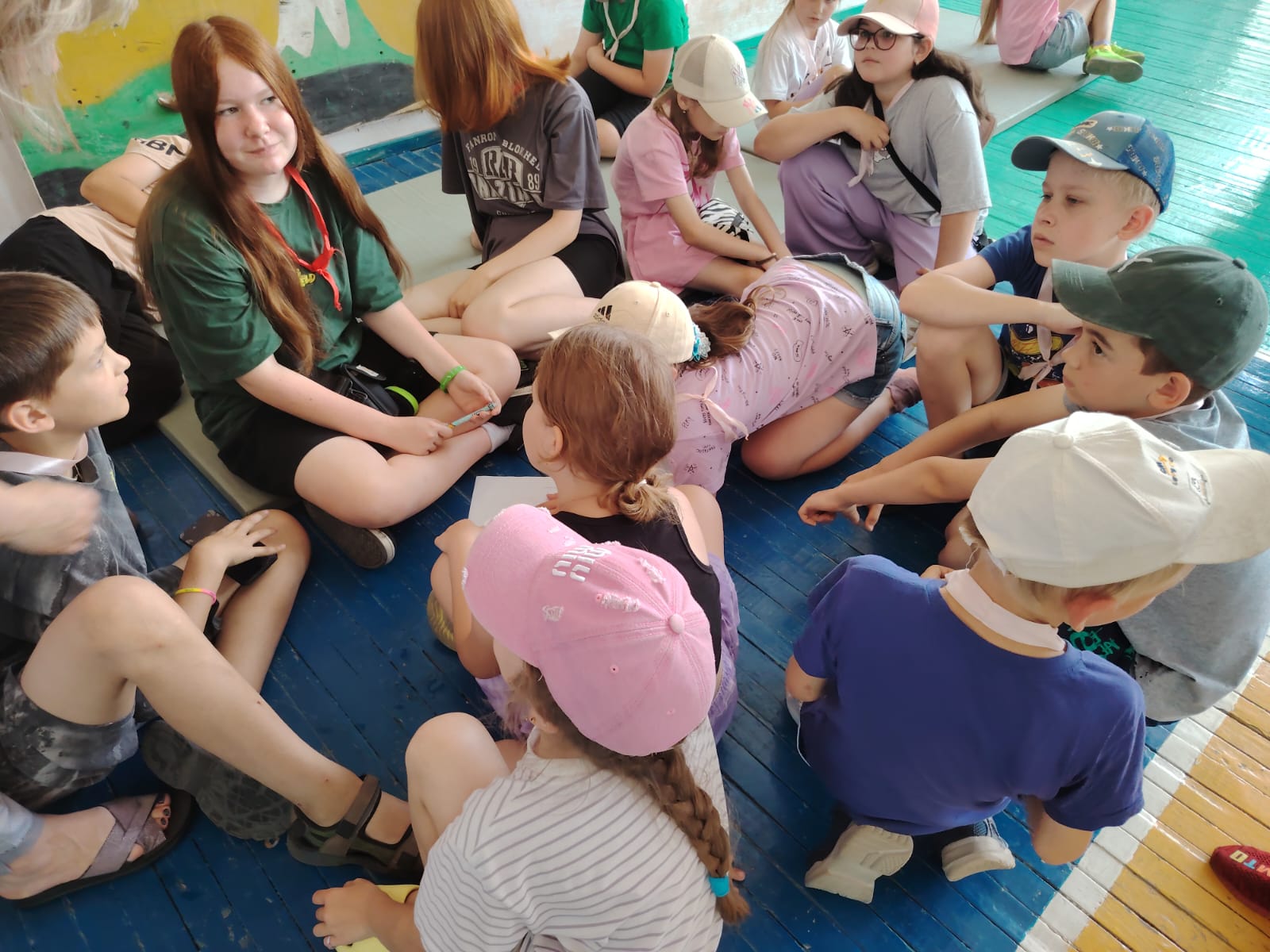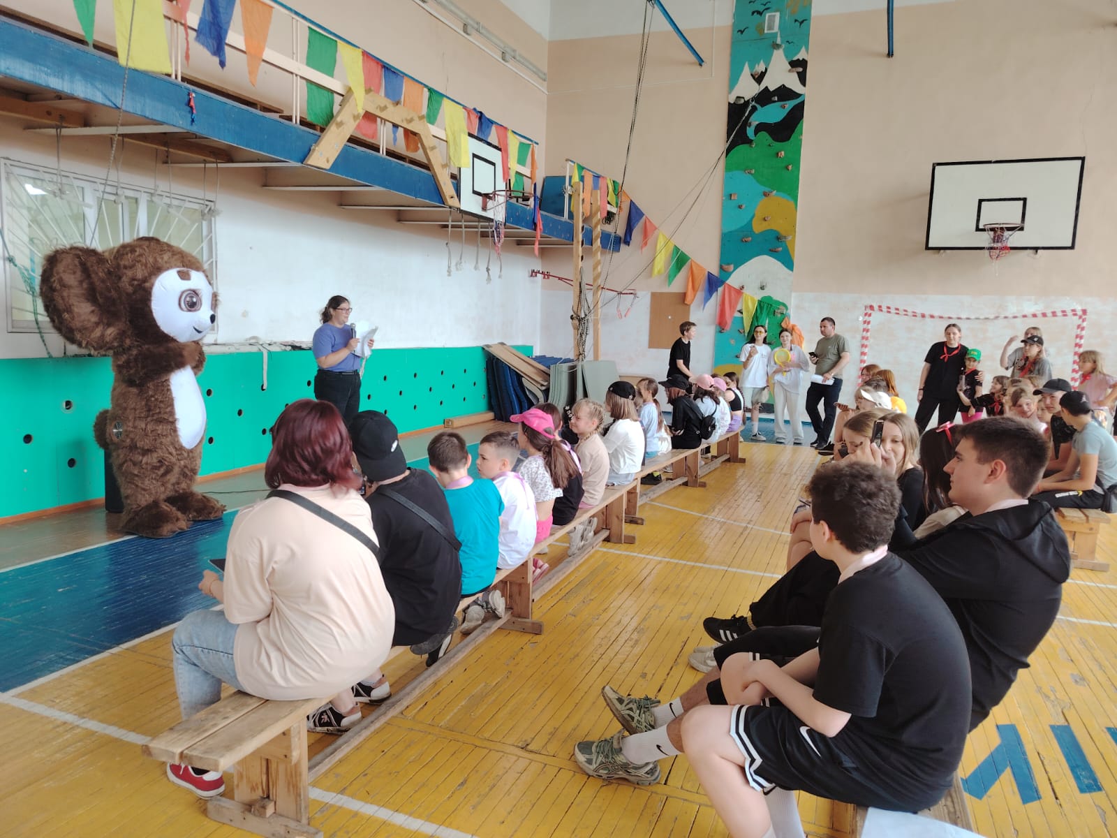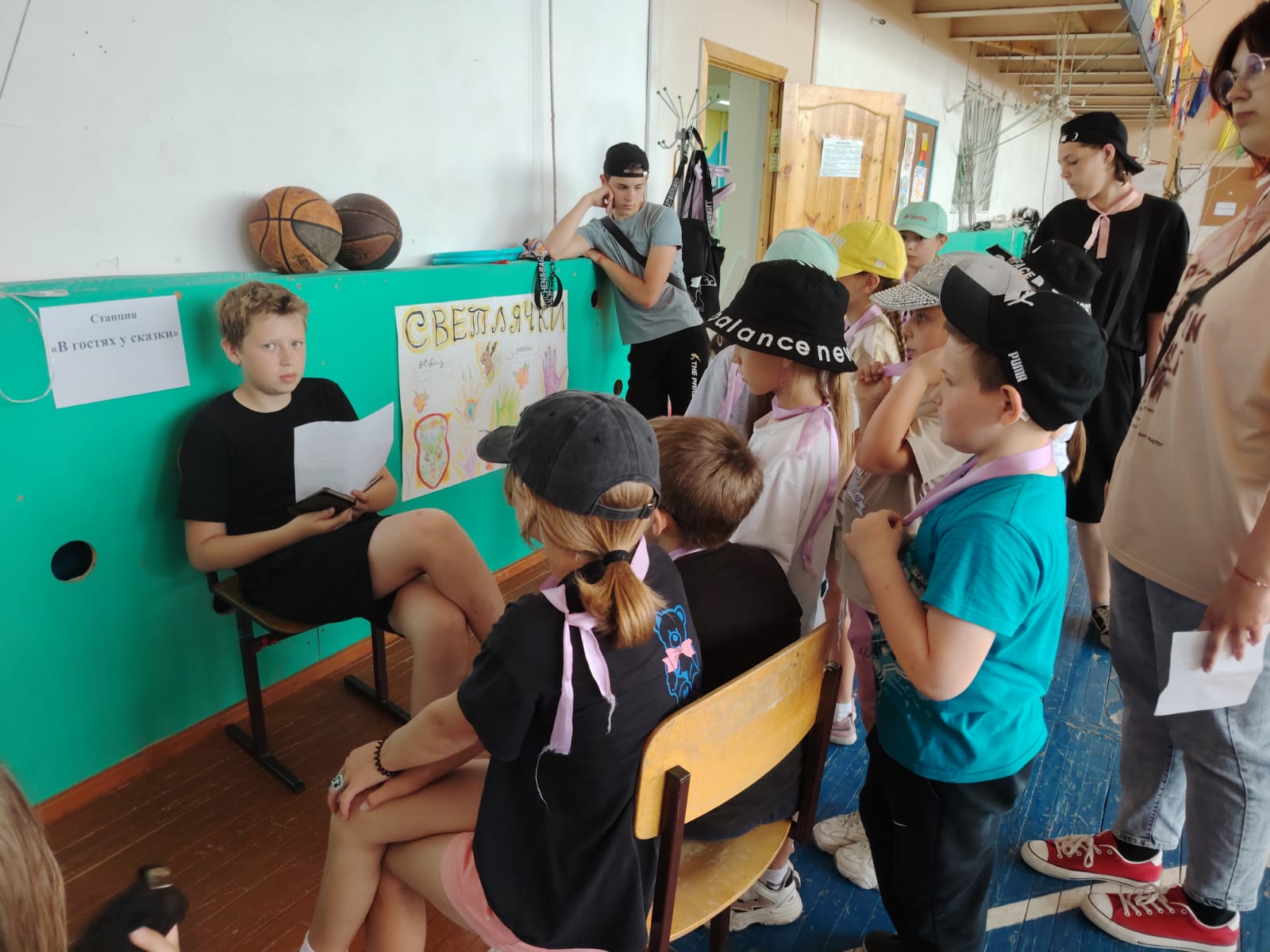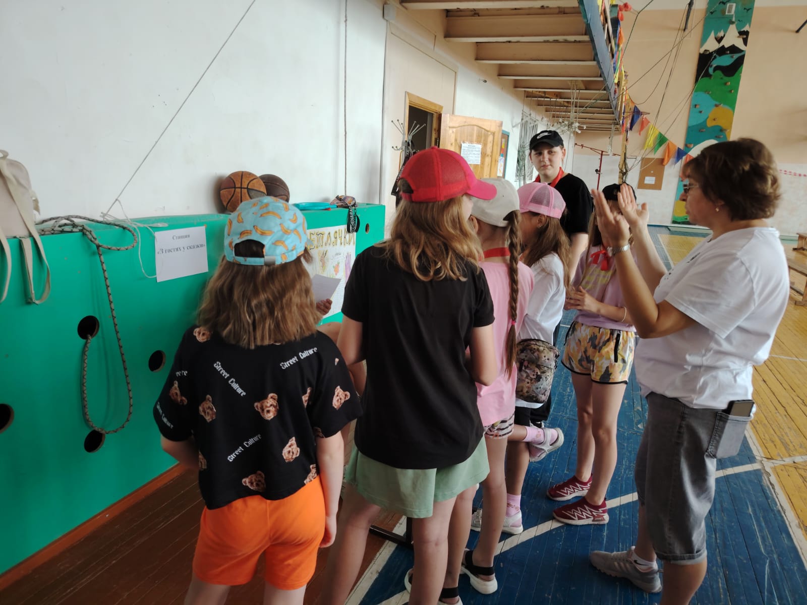 И снова на лагерной школьной площадке игра!!! Игра по станциям "Город детства". Методист МБУК РДК Надежда Коробкина подготовила ребятам различные задания и испытания. Было 8 станций, где дети показали свои знания, талант. Станция "Что ты знаешь о спорте", "Загадочная", "Игровая" и другие, но больше всего ребята были в восторге от станции" Точь-в-точь ". Дети примеряли маски эстрадных исполнителей и под музыку изображали певцов. В конце мероприятия были озвучены победители, вручены награды. Сделали общее фото с Чебурашкой, который пришёл поздравить победителей.
