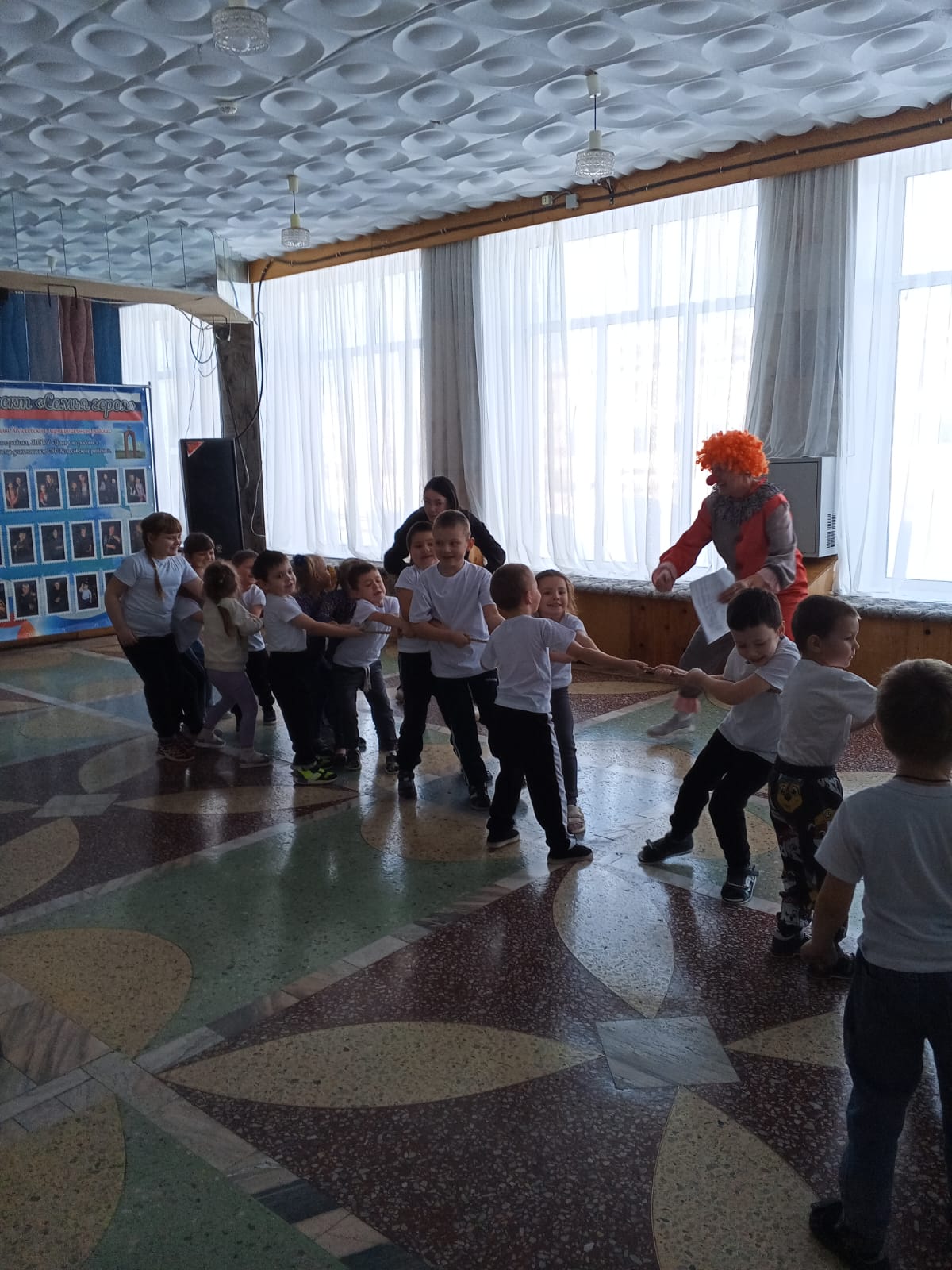 Звонкий смех, счастливые лица мальчишек и девчонок – такая оживлённая атмосфера царила в доме культуры. В этот день прошла детская игровая, программа посвящённая 23 февраля. Она называлась «Вместе веселее!» и участниками ее стали ребята подготовительных групп "Звездочка" и "Радуга" БОУ "Колосовская СШ. Программа была наполнена множеством веселых конкурсов и игр -" Боулинг ", "Канат", "Неделька". Не оставила равнодушным ни одного ребенка. Мероприятие украшали задорные, ритмичные мелодии, которые звучали на протяжении всей встречи. Было весело. Царила атмосфера веселья, смеха, озорства, улыбок и хорошего настроения. Завершением мероприятия был флешмоб " Двигайся, замри", совместное фото и сладкие призы!